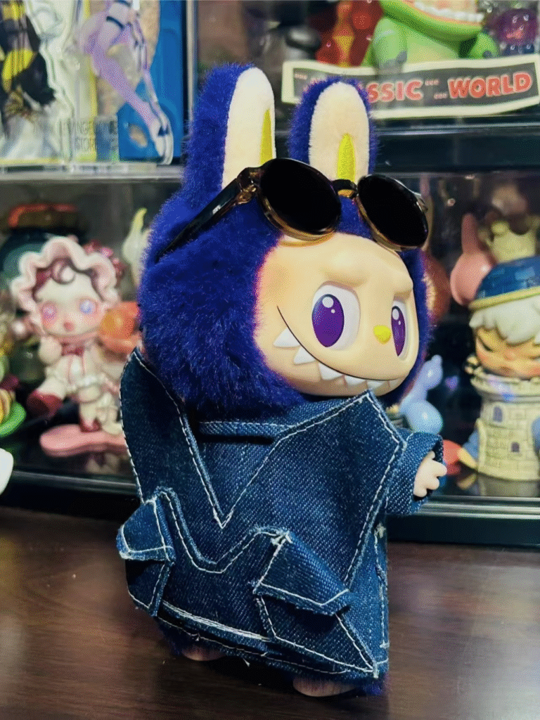 The finished product is born: A heart full of joy from harvest. When Labubu carefully puts on the finished denim jacket, at that moment, all the hard work turns into joy. Watching Labubu transform into a trendy and cute kid, with the unrestrained spirit of a cowboy and the warmth of handcrafted products, my heart is filled with a sense of achievement. This is not merely a baby dress; it is the result of the interweaving of creativity and passion, a unique memory that belongs to me and Labubu. Designing and creating original clothes for Labubu is a journey accompanied by creativity and passion. From the flash of inspiration to the birth of the finished product, every step is full of surprises. During this process, we endow the little dolls with unique styles and immerse ourselves in the joy of creation. And these handcrafted doll clothes will continue to accompany Labubu, blooming their own brilliance in the world of trendy toys.